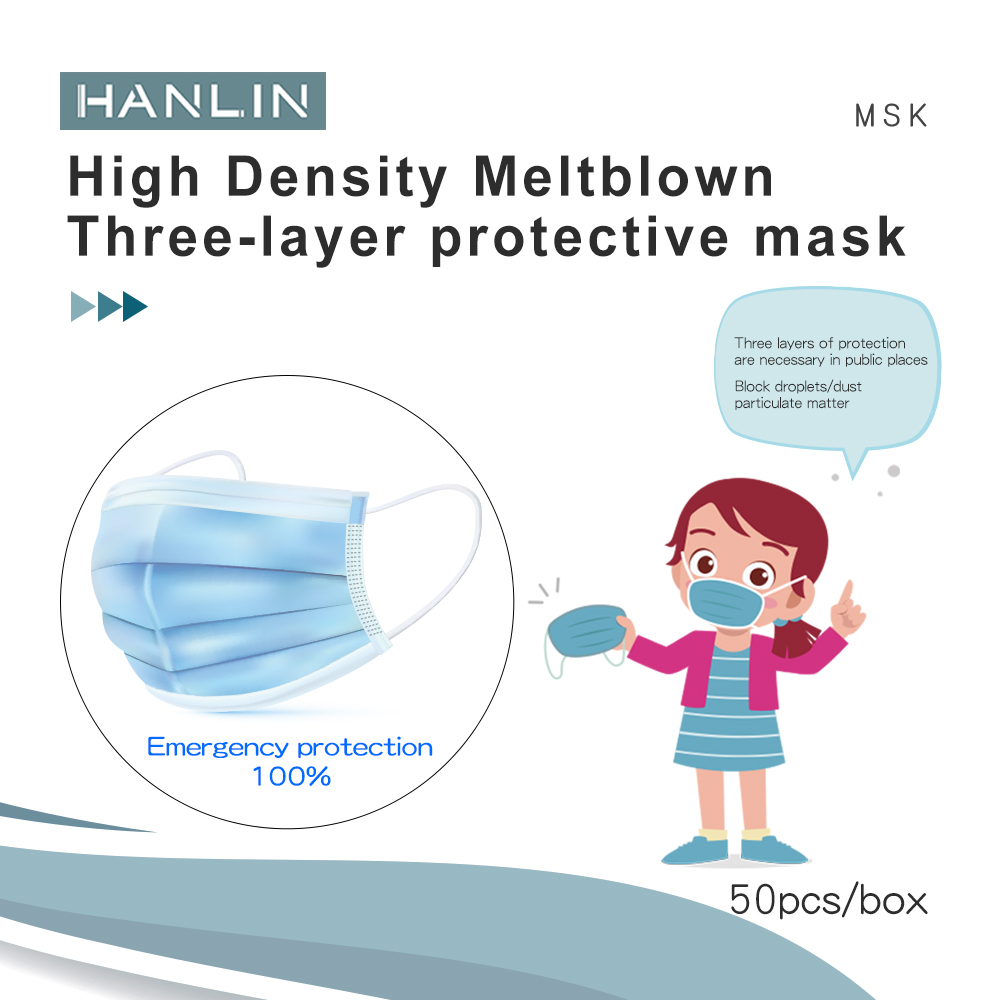 HANLIN-MSK high-density meltblown three-layer protective mask (this product is not a medical grade mask)# adult mask dust mask disposable mask spot
