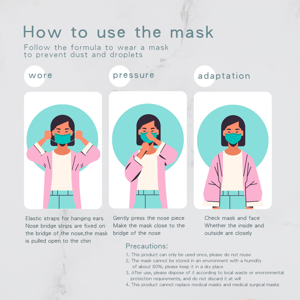 Effectively block droplets, fine dust and fine particles, fit the face contour, breathable and comfortable, low resistance, free breathing