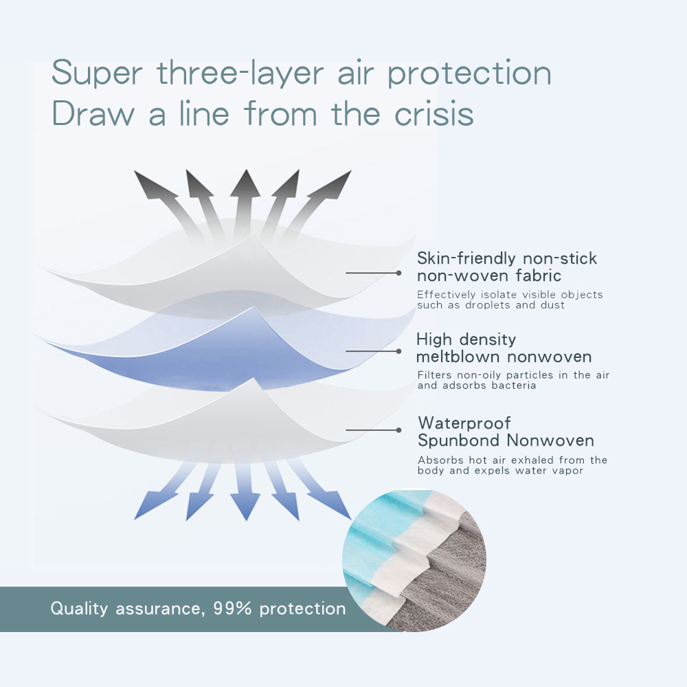 1. The middle layer adopts high-density 90 grade meltblown cloth