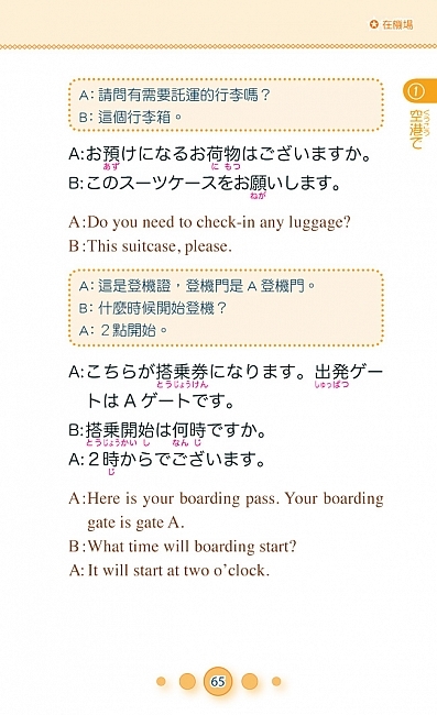 每個例句皆完整收錄日、中、英三種語言,幫助學習者全面理解對話含義,廣泛應用於各種國際交流場合。
