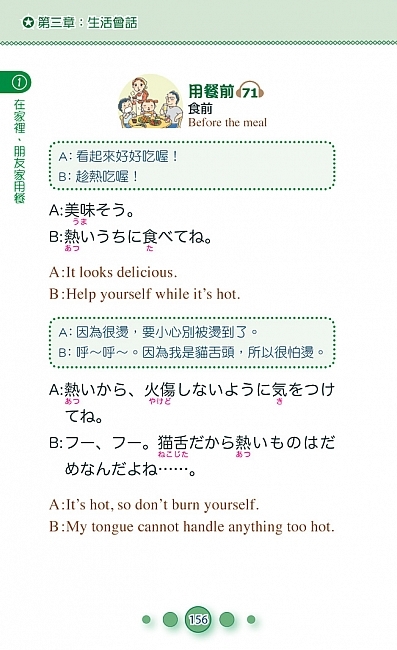 情境多元豐富,會話融入大量日本要素,在閱讀之中窺見生活場景,從對答之間感受相處之道,體驗日本的真實樣貌。