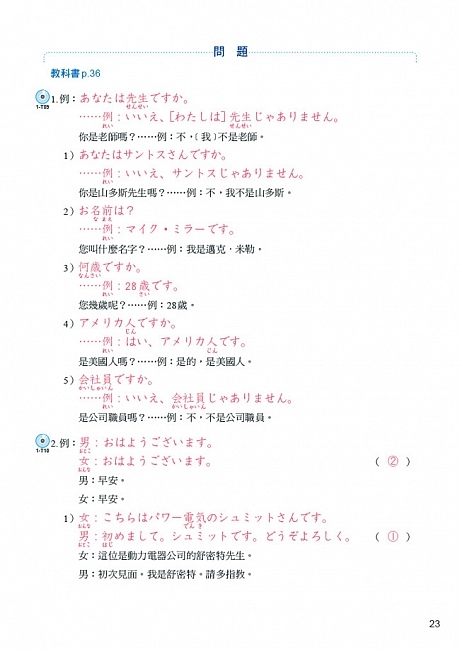 ★收錄各課練習、問題等參考解答 完整收錄各課「練習B」、「練習C」、「問題」、「複習」等參考解答,並以紅色標示,清晰明瞭。 ★附各課練習、問題中文翻譯 依序附上各課所有練習、問題解答等的中文翻譯,方便讀者對照、理解內容,並可練習中日對譯。 ★搭配智慧筆點讀學習 全書可搭配智慧筆點讀學習,點選中文翻譯,亦可聆聽日語原文,可自行確認是否已熟記各種表達方式。 ![]() ![]()